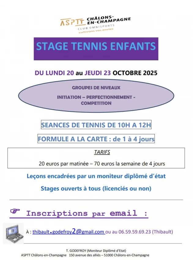 Inscription par email. Email : thibault.godefroy2@gmail.com
